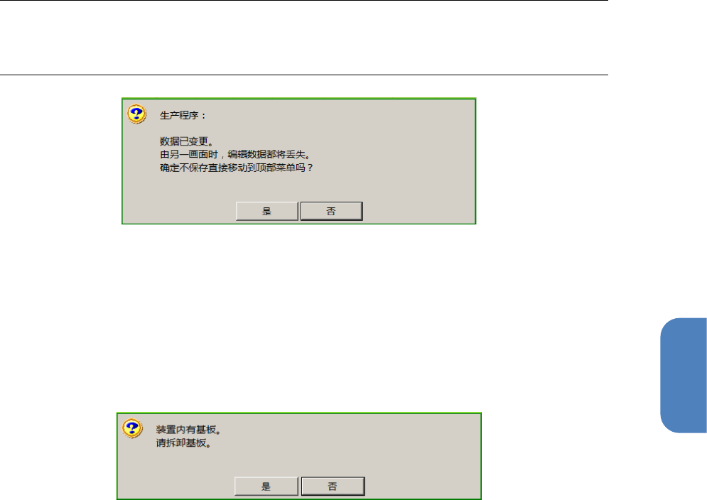 触摸[否] 按钮,则强制显示 [顶部菜单] 画面。如果要将基板取出,需再次返回 [编辑生产程序] 画面,使用