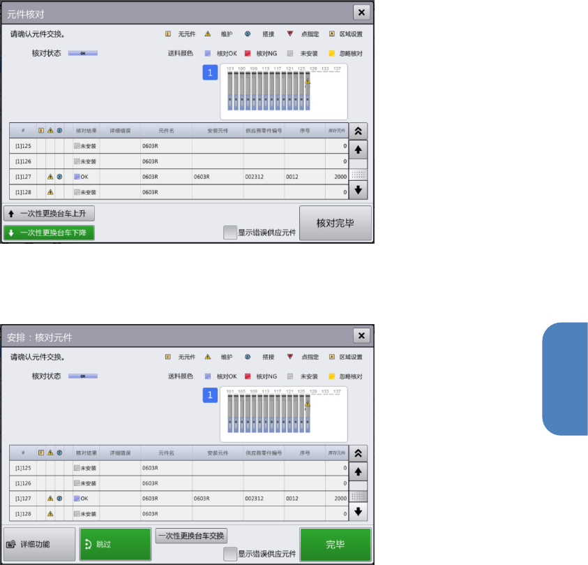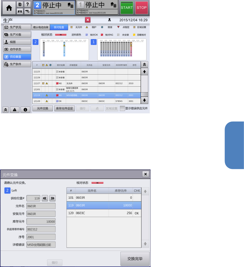 对 NG。如果在贴片机启动时已超过使用期限的 MSD 元件已被装载,会在已装载的状态下启动,在[供给