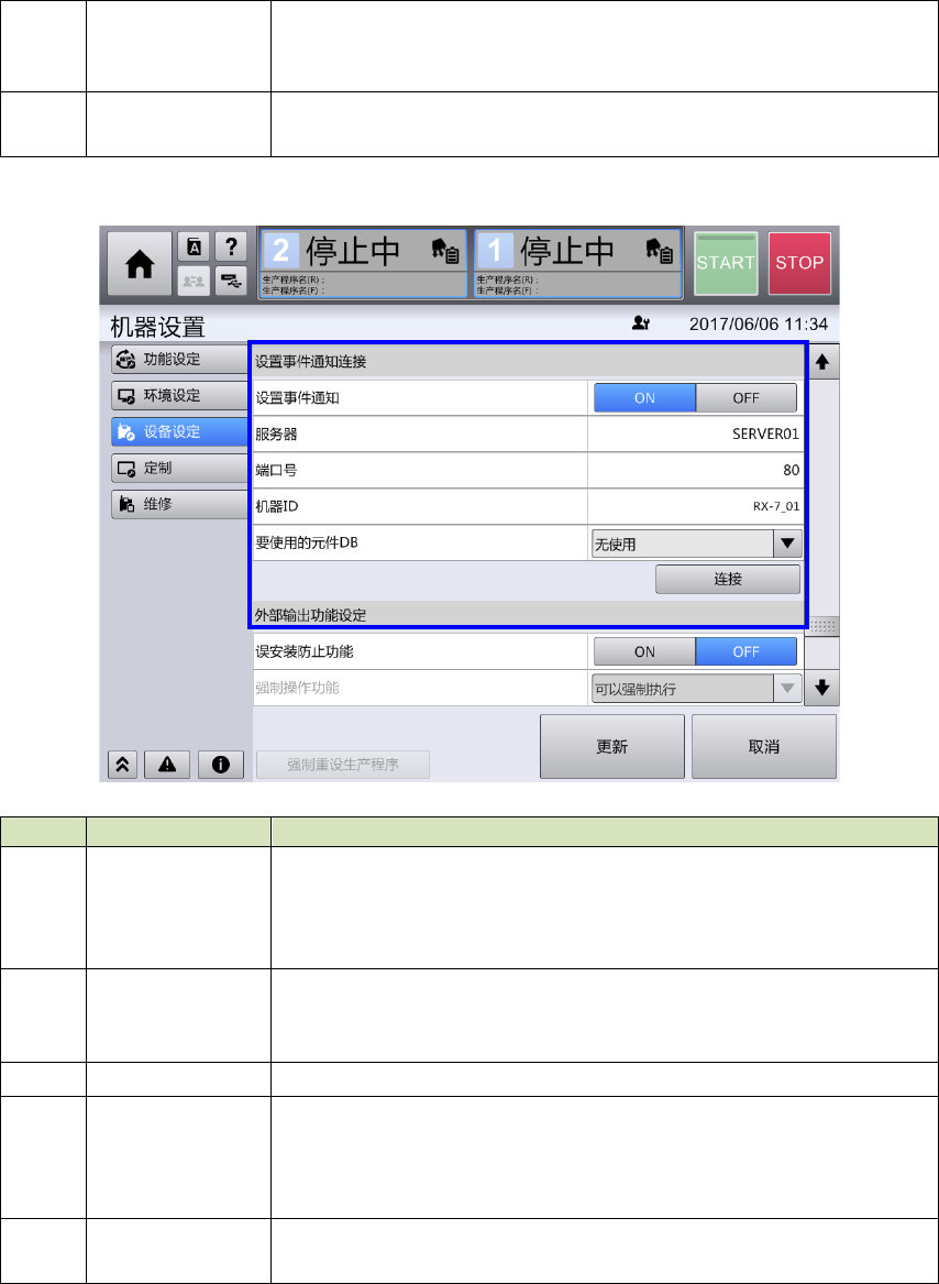 第 4 章 操作 篇 4- 22. 外部 输出功能的使用( 选项) 579 4 外部输出功能设定 记号 项目 详细情况 (a) 误安装防止功能 选 择误安装防止 功能的 ON/OFF 。 • ON :使用误安装防 止功能 • OFF :不使用误安装防 止功能 进行 设定时,付费选项 [ 误安 装防止功能 ] 需已被 设定为 ON 。 (b) 强行操作功能 强行操作功能, 选择无须比对 / 强行 可能 / 需要比对。 • 无须比对:生…