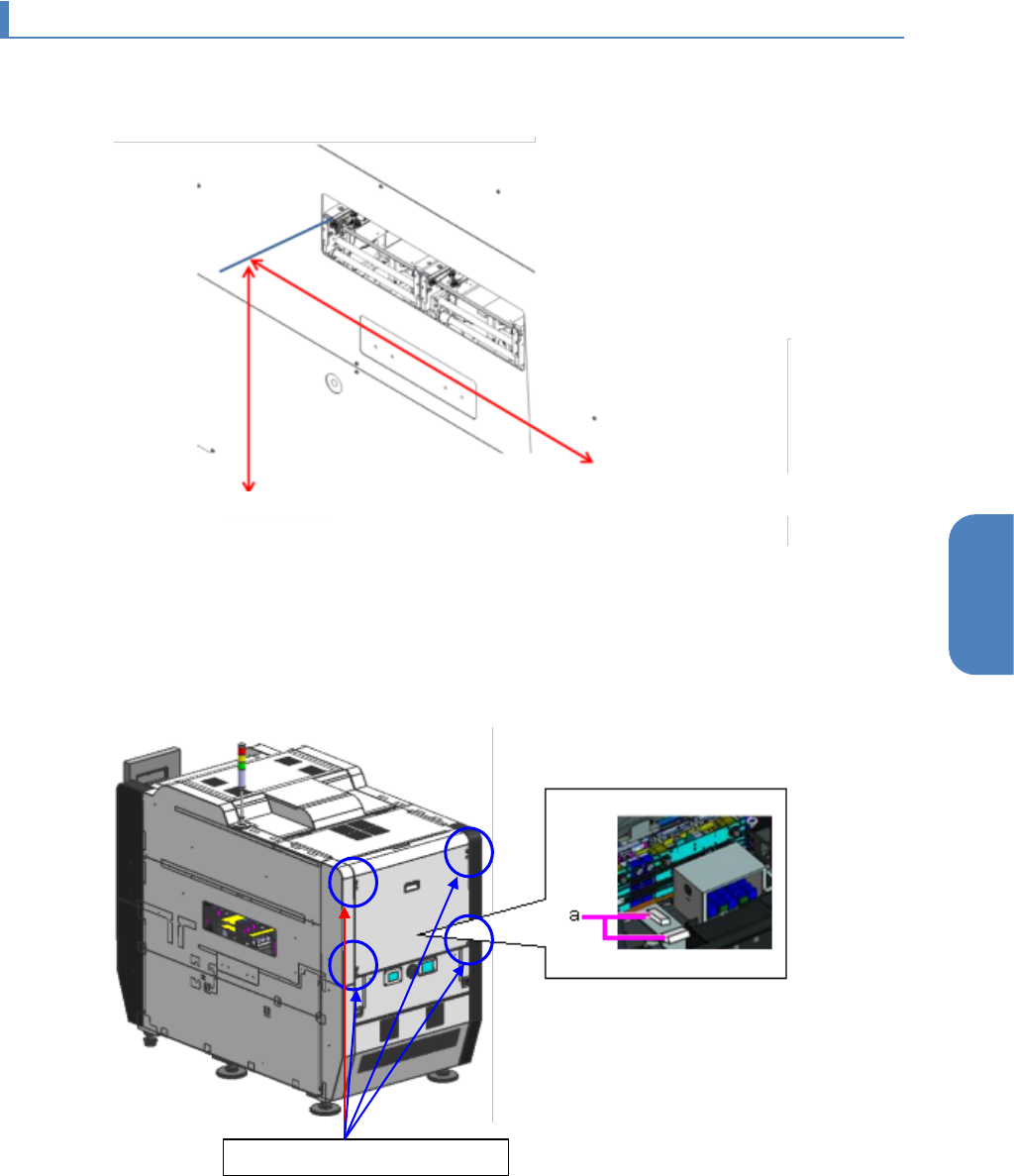 第 3 章 导入篇 3- 1. 安装 5 3 3-1- 3. 安装 RX -7 根据导入的安装 系统生产线的 基板搬送规格,调整 本机的基板搬送面和 搬送高度。 本机单机的基板 搬送规格如下 所示。 1 拆下固定本机后部的盖子(护罩) M4 内六角螺栓 X4 ,在水平器安装用空间的 X 方向 和 Y 方向上各放 1 个水平器。 (a) 水平器 基板传送高度 基板传送面:本 机正面侧的输送带上面 M4×10 内六角螺栓 4 根 900 -…