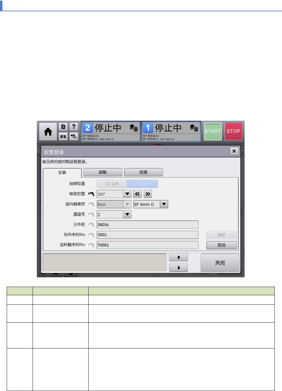 输入要安装的供料器的供料器序列 No 或读入条形码。