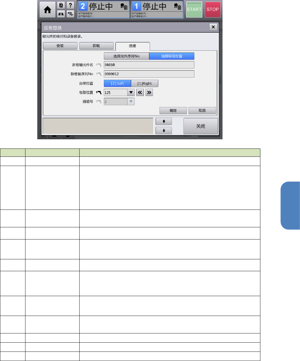 通道号 当使用 E 8mm D 送料器时,选择已安装元件的通道号或者读入条