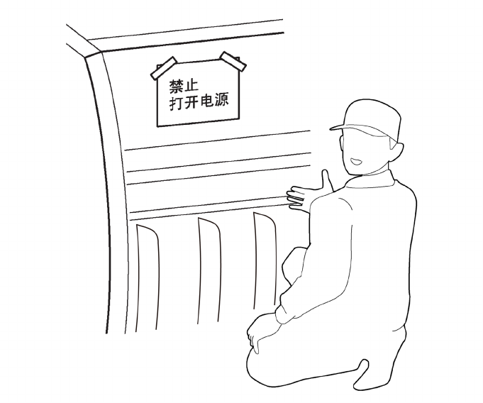 检查中在未接通电源的状态下作业时,请在电源开关前放置注意标示后,进行检查作业。