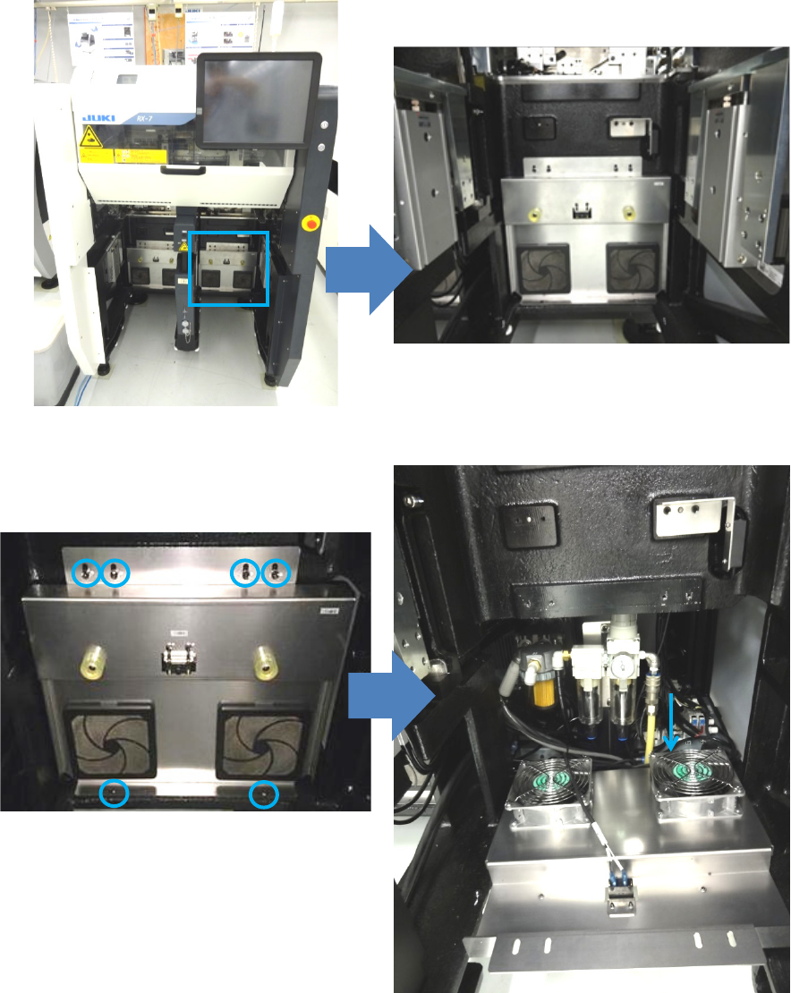 检查位于台車插入部里面的吸气风扇