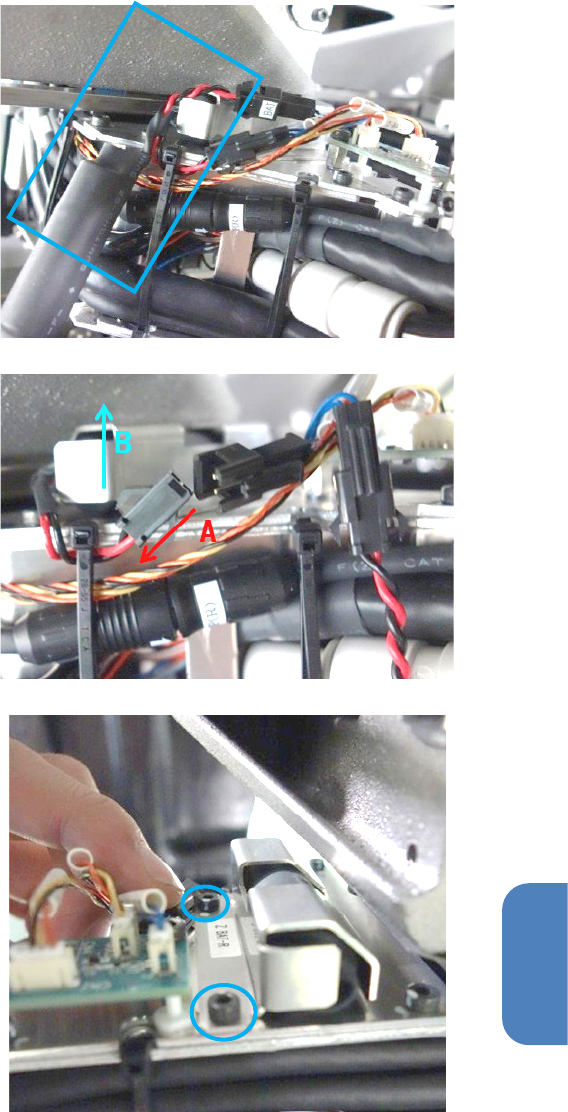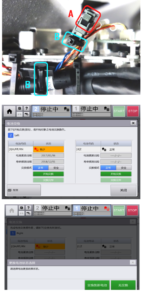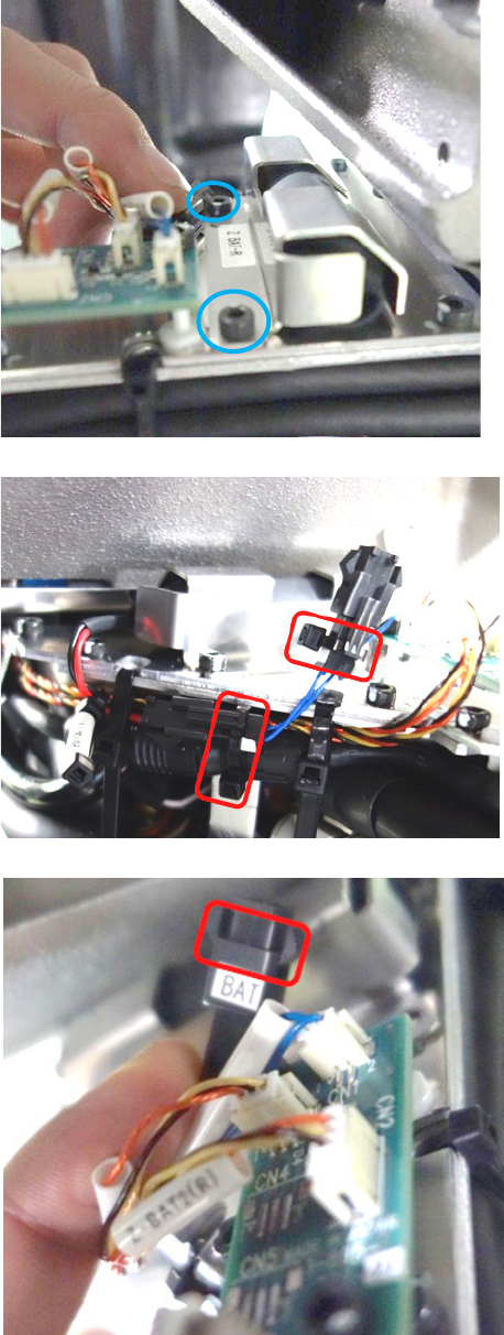 第 5 章 维护 篇 5- 2. 保养检查 41 5 7. 将新电池连接到拆下了 防短路连接器的 连接器上。 8. 拆下 A 旧电池的连接器, 取下 B 电池 托架。 9. 将新电池装到托架上, 用 2 个部位的螺 丝予以固定。