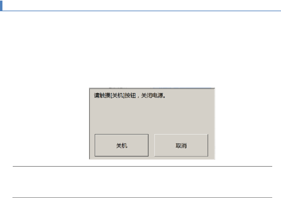 第 4 章 操作 篇 4- 1. 系统 的操作 4 4-1- 3. 切断电源时的步骤 切断电源前请确 认以下项目。 1 正在自动运转时,结束自动运转。 2 确认其他机械动作已结束。 3 按下 POWE R OF F 开关(○)。 监视器将显示以 下的确认提示 信息。 注意 生产动作中或执 行预热运转中 POW ER OFF 开关(○)无效。 请触摸监视器 上的 [STOP] 按 钮, 使装置停止后 , 再执行。 4 如果可以切断电源…