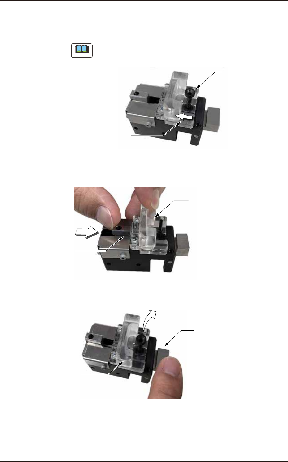 (4) Press the acrylic block and move the slider in the direction of white arrow to