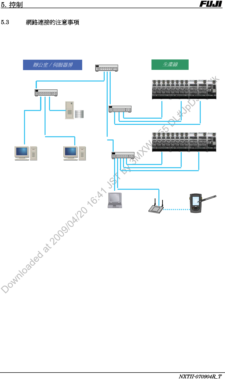 機器與 FujiFlexa、Fujitrax 間的網路負荷有可能變大。因此,機器與 FujiFlexa、Fujitrax 間的網