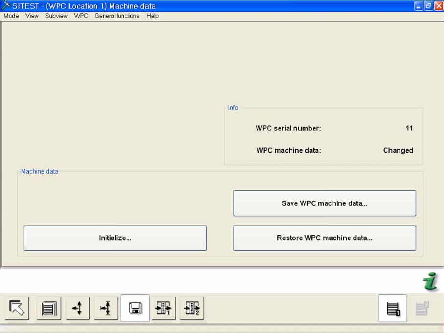 Restore WPC machine data... Opens a dialog box in which you can restore (import) the saved WPC
