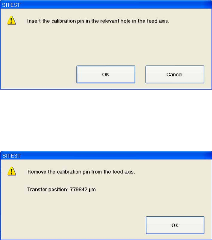 X Insert the calibration pin into the relevant hole at the end of the feed axis and select