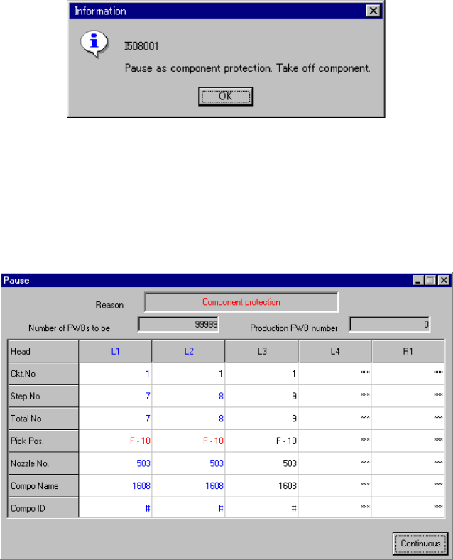 Figure 7.4.7.2 Pause dialog box due to component protection