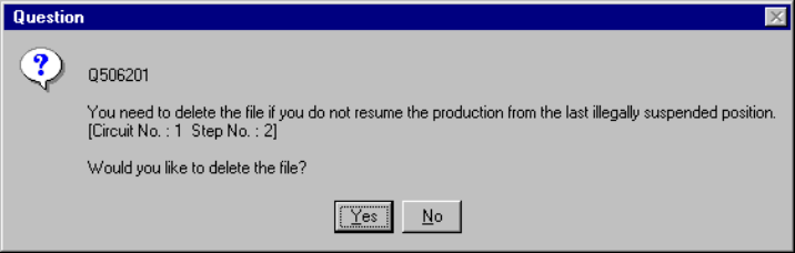 the current production was terminated abnormally, the following dialog box