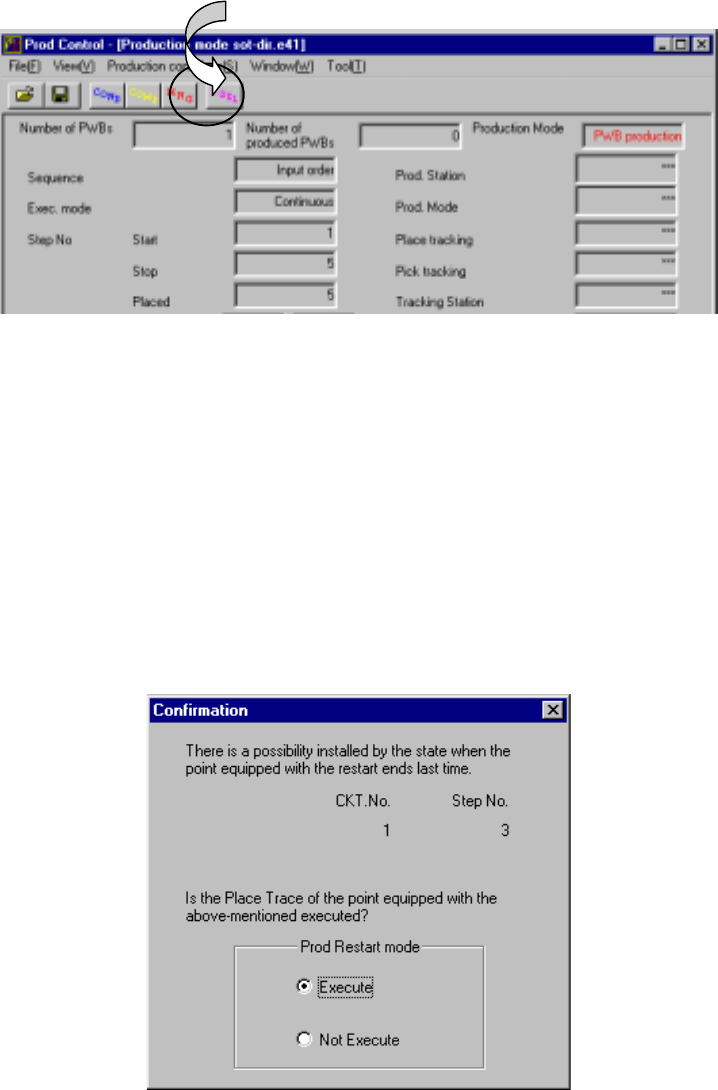 7 − 73 ② St art of continuous pr oduction W hen you press the <START> switch af ter pr oduction is term inated abnormally, then you recover the system f rom t he error condit ion. By clicking t he desired check box…