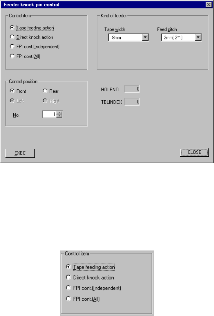 pin control] command, the following “Feeder knock pin control” dialog box appears.