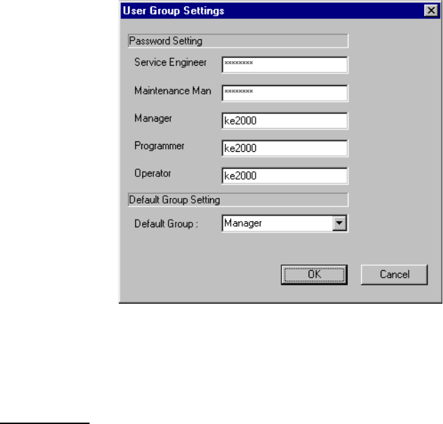 Note that you cannot see nor change the password(s) of the user group(s) which is (are)