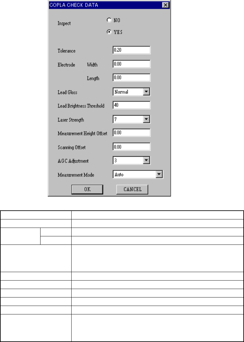 When you click the <Set> button, the following “COPLA CHECK DATA” dialog