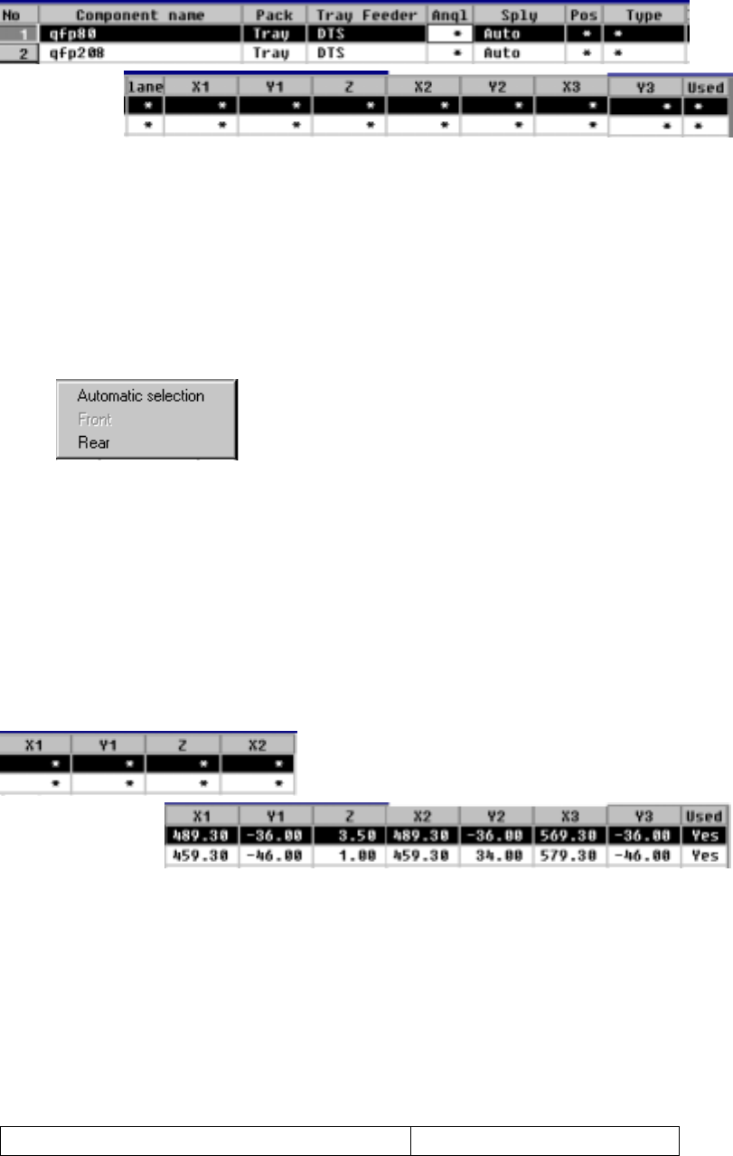 4 – 1 15 ④ X1, Y 1, Z, X2, Y 2, X3, Y3 These coordinat es specify the component pick- up position on three cor ners of a tray . W hen y ou enter t he "Sply" paramet er , t he component pick -up position is auto…
