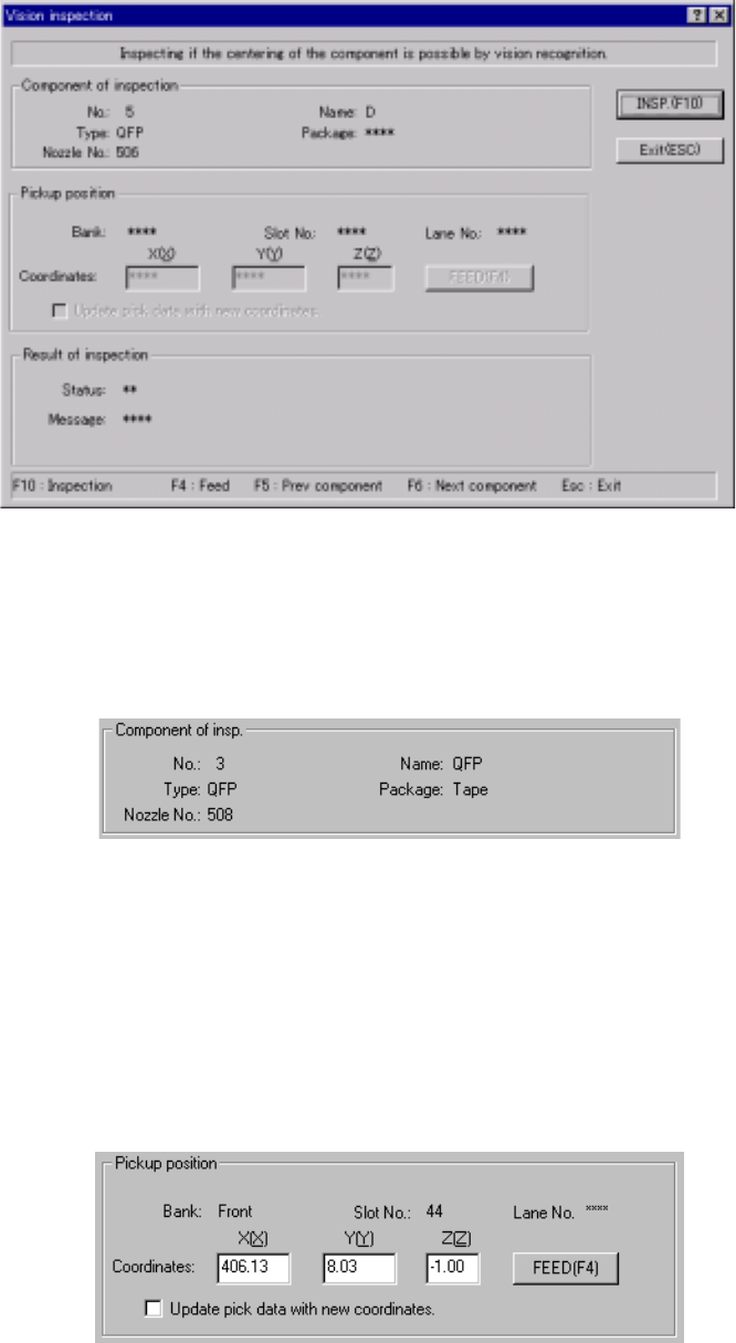 Data on the component pick-up position appears on the dialog box. You