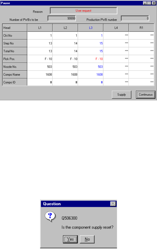 Figure 7.4.9.1 Pause dialog box equipped with the Supply button