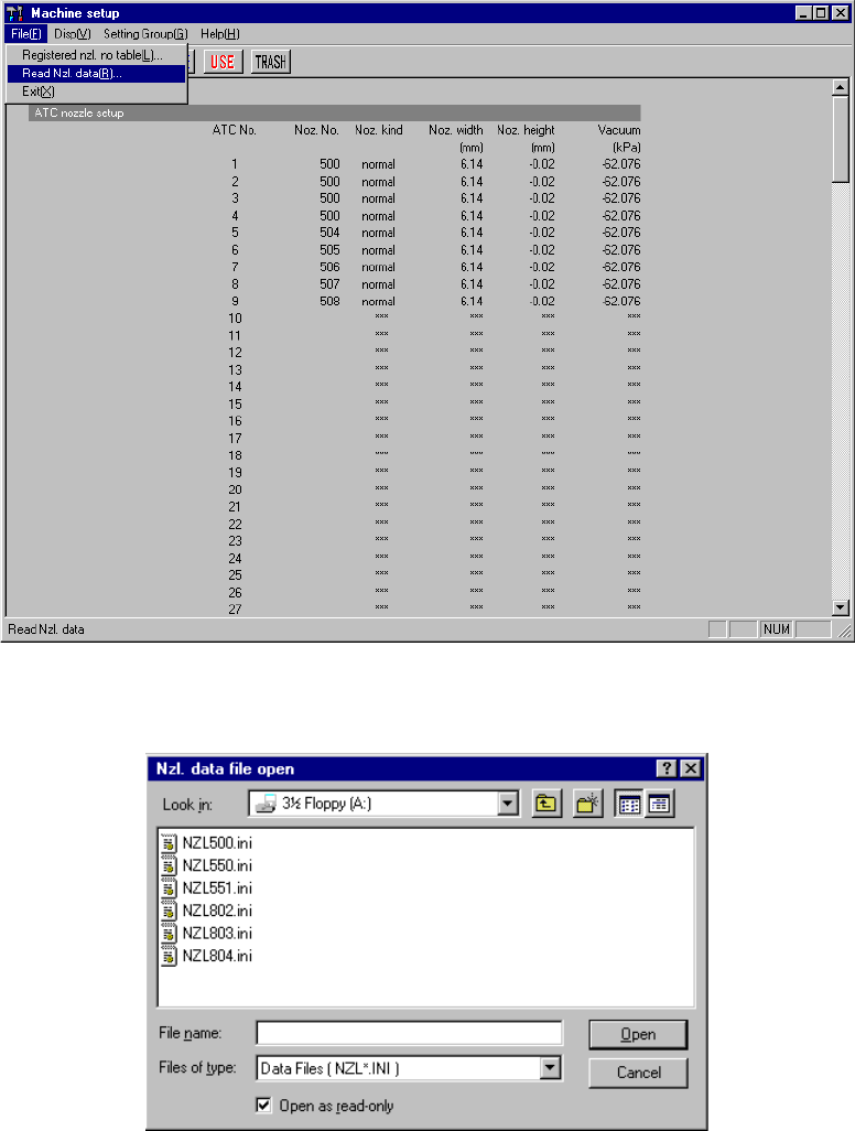 When you select the [Read Nzl. data] command from the “File” menu that is invoked