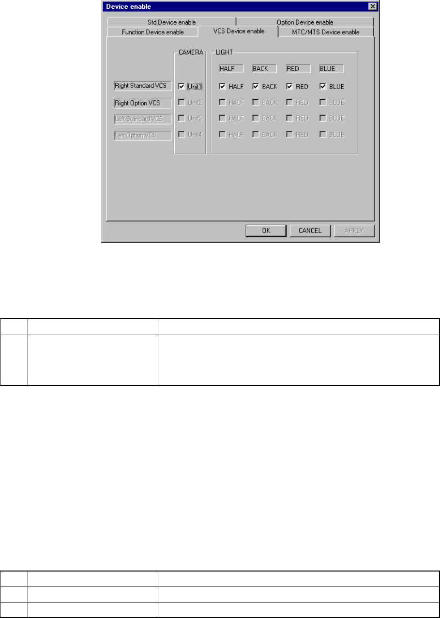 When you select the [VCS Device enable] tab, the “VCS Device setting” dialog box