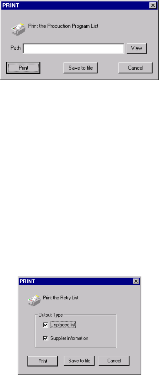 "Print production program list" dialog box.
