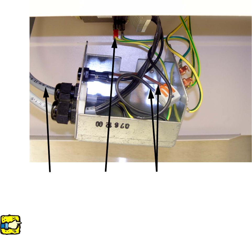 : Guide the power cable through the hole beneath the table bed and fix the cable using the cable