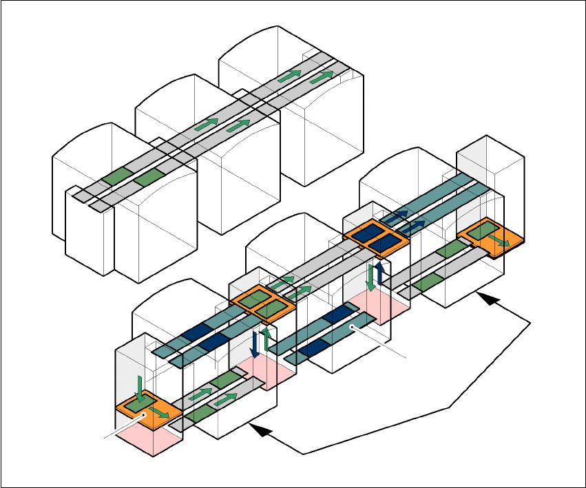 betats. Automaterna är fortfarande i serie men med hjälp av hissarna och transport i undre läge