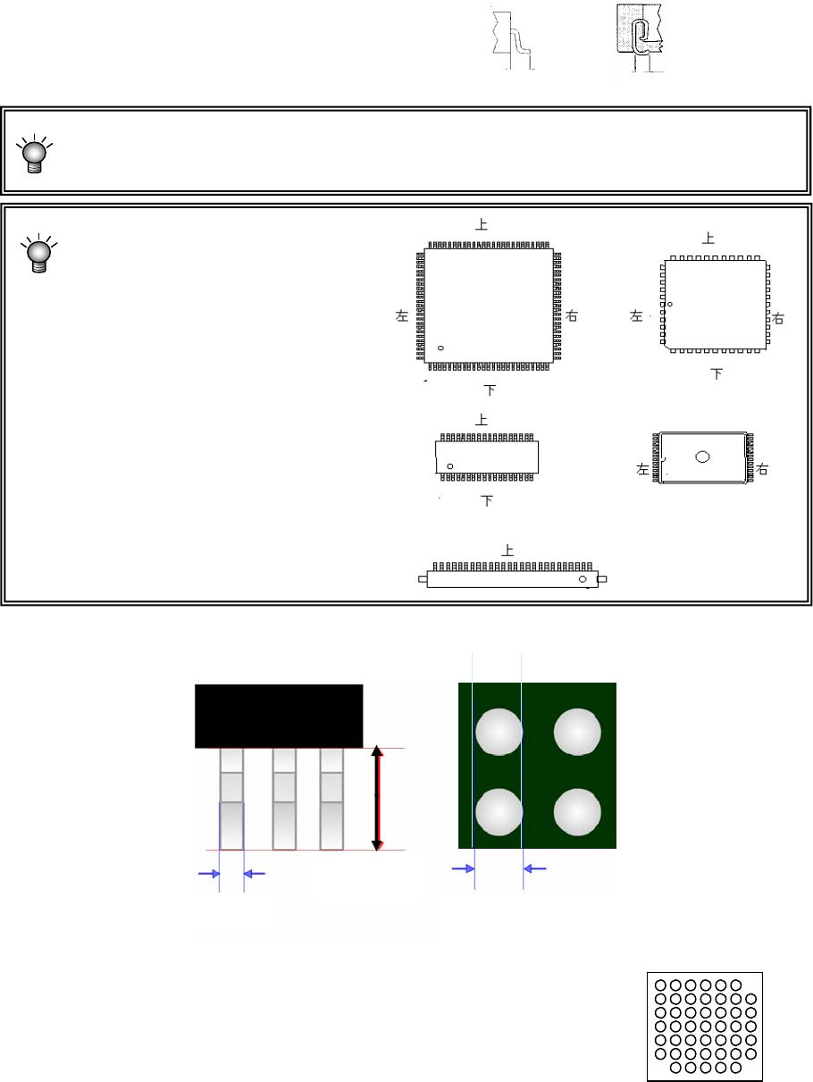 QFP、插头等的引脚元件采用俯视图,BGA等球面元件采用仰视图来制作。