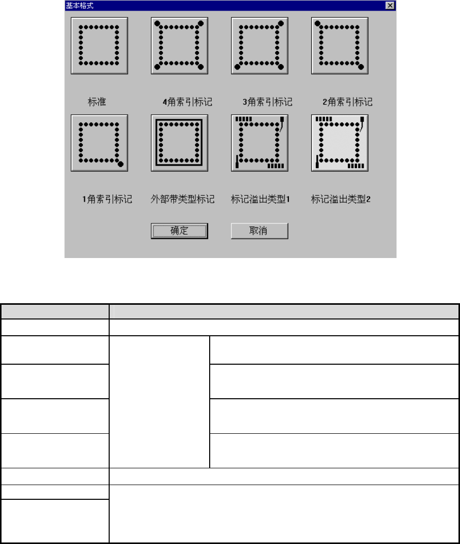 操作手册Ⅱ 2-72 9)基本样式 当球周围有发光部分的元件时,将其发光部分 作为数据登录,在图像定中心时,忽略球周围 的发光部分(基本样式)。 因此, “基本样式”+“球形图案”组合为识别图案。 定中心仅根据球面等“图案”进行。 ① 基本格式(BGA、FBGA 时) 基本样式限于“识别种类”为“所有球”或“无球”时才能设置。 请右击或按“F2”键,从显示的列表中选择。 图 2-3-28 基本样式 选择项目 基本样式 球面图案 + → …