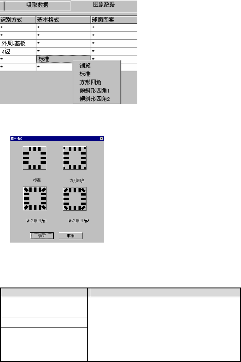 操作手册Ⅱ 2-75 10) 球面图案(仅限于 BGA、FBGA) 设置BGA、FBGA元件识别图案。 仅在“识别方式”为“全球面”或“全垫片”时才能设置球面图案。 请右击或按“F2”键,从显示的列表中选择。 球面图案选择项目一览 球面图案 浏览 从可登录的球面图案列表中选择。也可查看预览画面。 编辑 打开球面图案画面,可设置标准型以外的图案。 标准 BGA 周边 BGA 可选 择满足 附件 CD“ 2-3-7-1-2 设置范围”条件的…