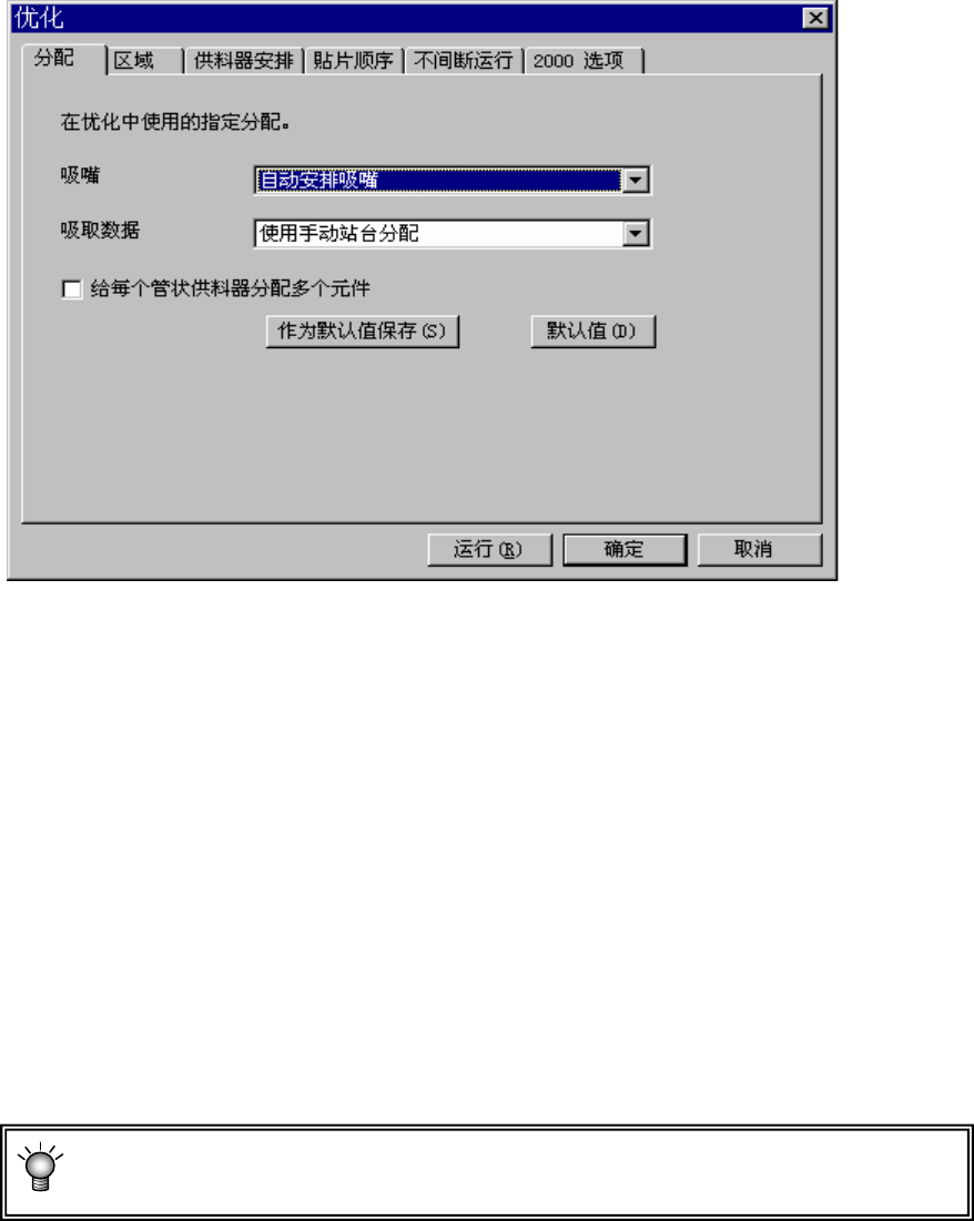 ①分配自动选择: 已指定的供料器按指定安排,只对“自动选择”的供料器进行优化。