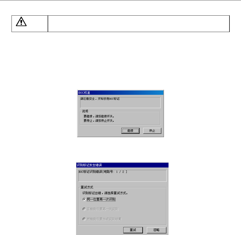 在进行时,若BOC标记识别失败(错误),则显示如下的选择画面。