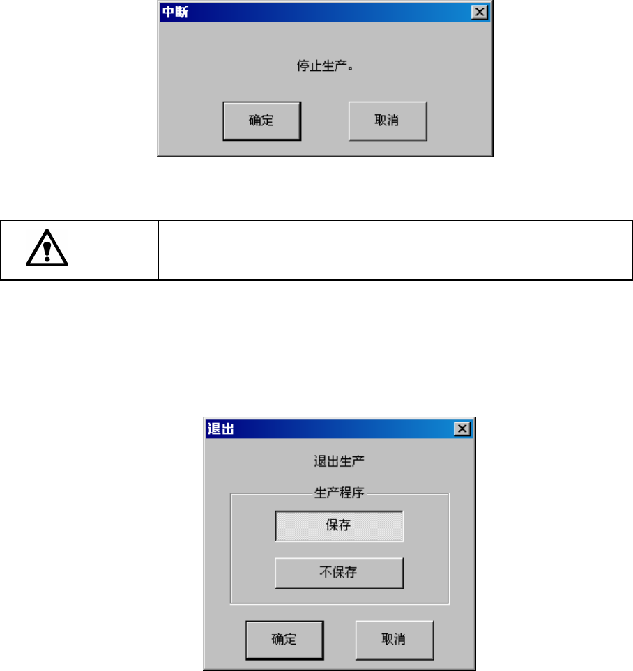 P>开关。此时显示如下的确认画面。单击“确认”后,生产将被中断。