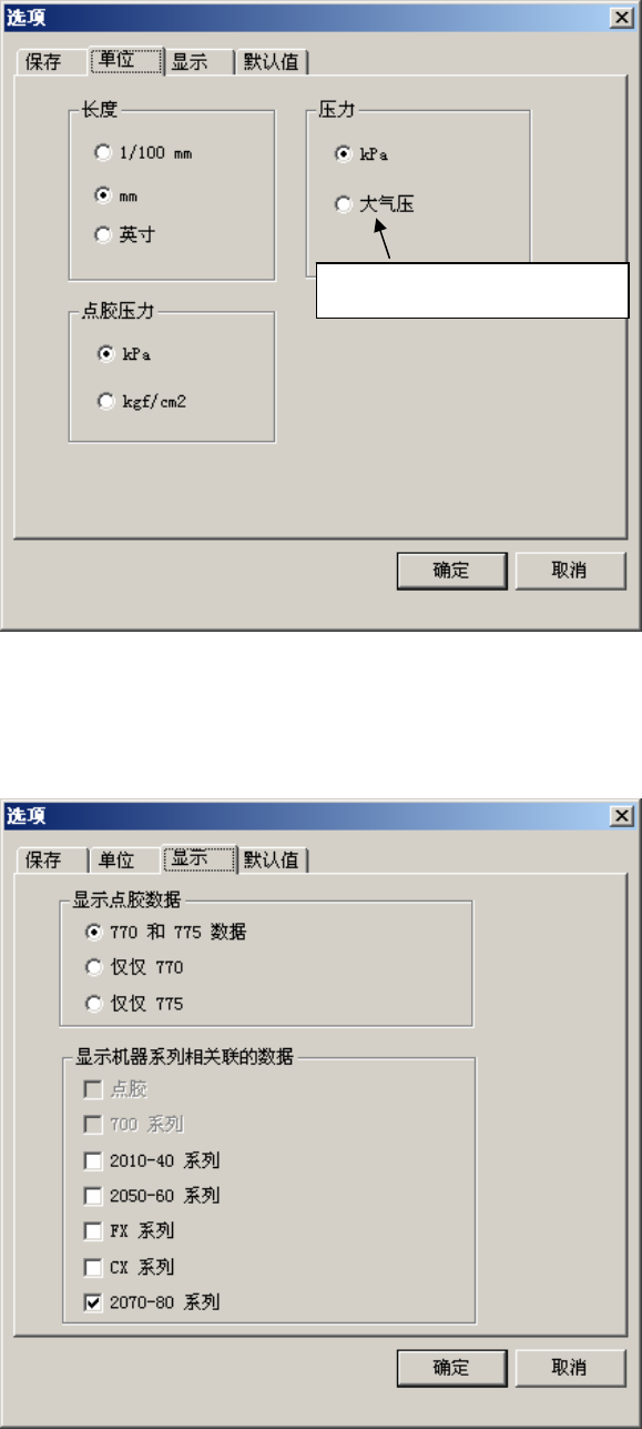 指定长度和压力的单位。在 KE-1070/1080 中没有使用“点胶压力”