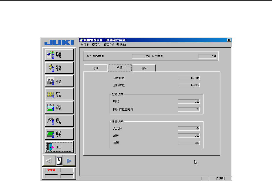 显示机器的运行时间(基板生产时间累计等)、吸嘴拆装次数等设备固有的运行信息。