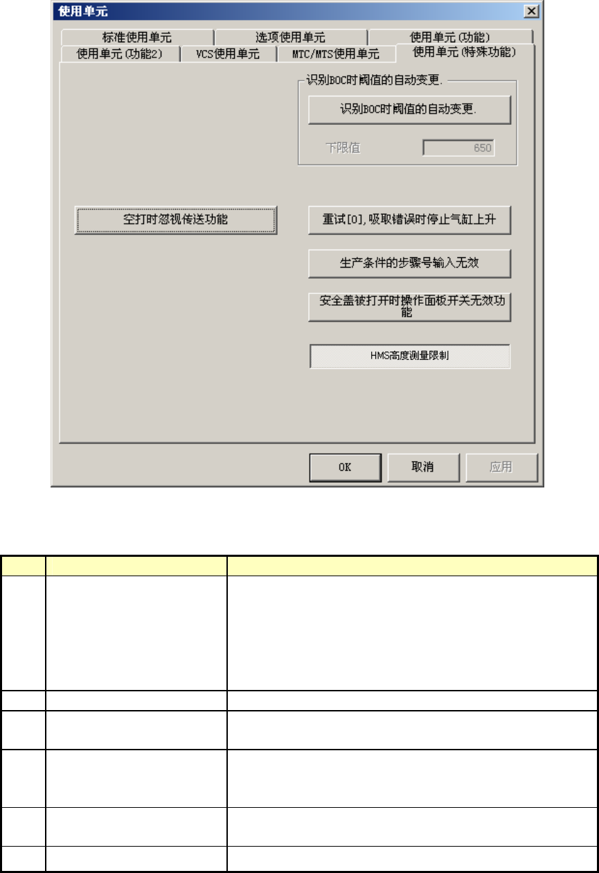 选择“MTC/MTS使用单元”标签,则显示如下图所示的MTC/MTS使用单元设置画面。