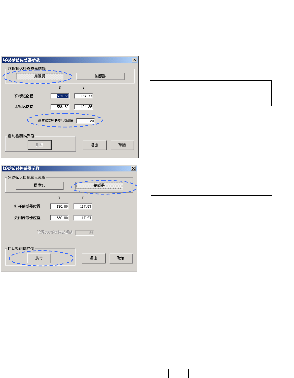 把焦点对准设置 OCC 坏板标记阈值的编辑框,按下 HOD 的 CAMERA 键开始示教。