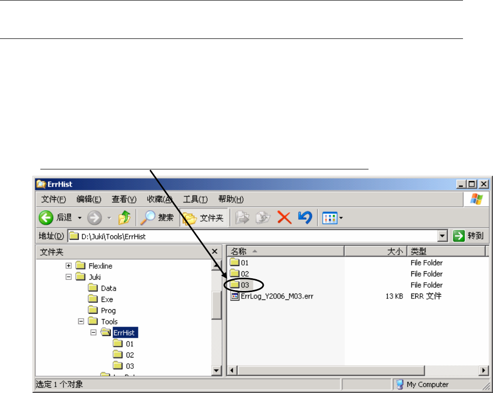 在「D:\juki\Tools\ErrHist」里有以月为单位生成的文件夹,以“出错号码(日-时分秒).log