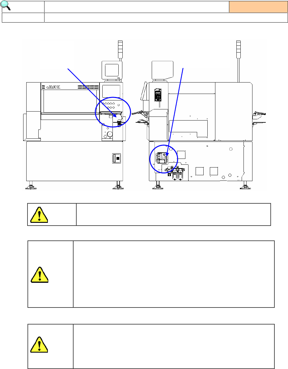 控制印刷基板传送方向的 “(A)X 夹杆”和 “(B)挡块” 的端部,安装有“挡片①”。