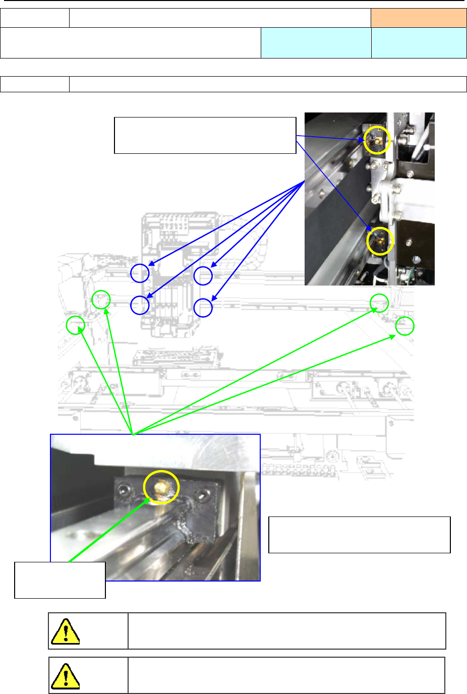 操作手册Ⅱ 5-22 5-4 注油 1) 用黄油枪,从 XY 轴直动单元的黄油注油孔注入黄油。 注油项目 5-4-1 XY轴直动单元 实施频度 :每年 使用工具 :黄油枪 使用润滑油 : 6459 润滑油 N 注油处 XY 轴直动单元(黄油注油孔) XY轴的驱动用带及马 达部的轴承, 请绝对不要注油 (机械油、 黄油) 。 注 意 为防止突然起动造成事 故,请切断电源后进行。 危 险 ① X轴直动单元轨道 上下 2 根 ② X軸直动单元…