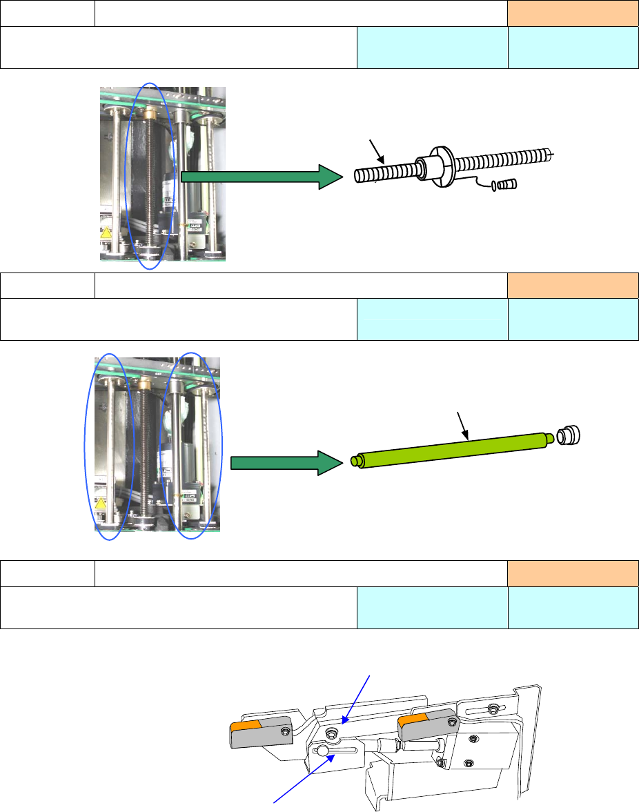 1) 用手把支撑台抬起,从两边把 4 根滚珠丝杠轴全面涂抹上黄油(CG2 润滑油)。