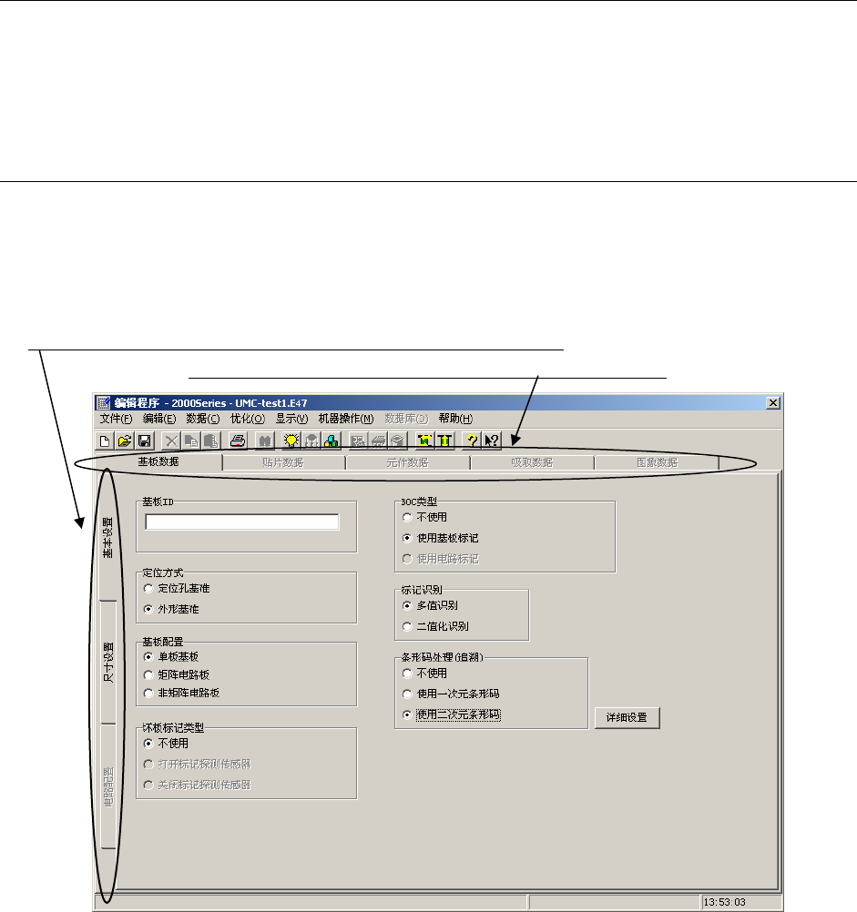 切换基板数据/贴片数据/元件数据/吸取数据/图象数据。
