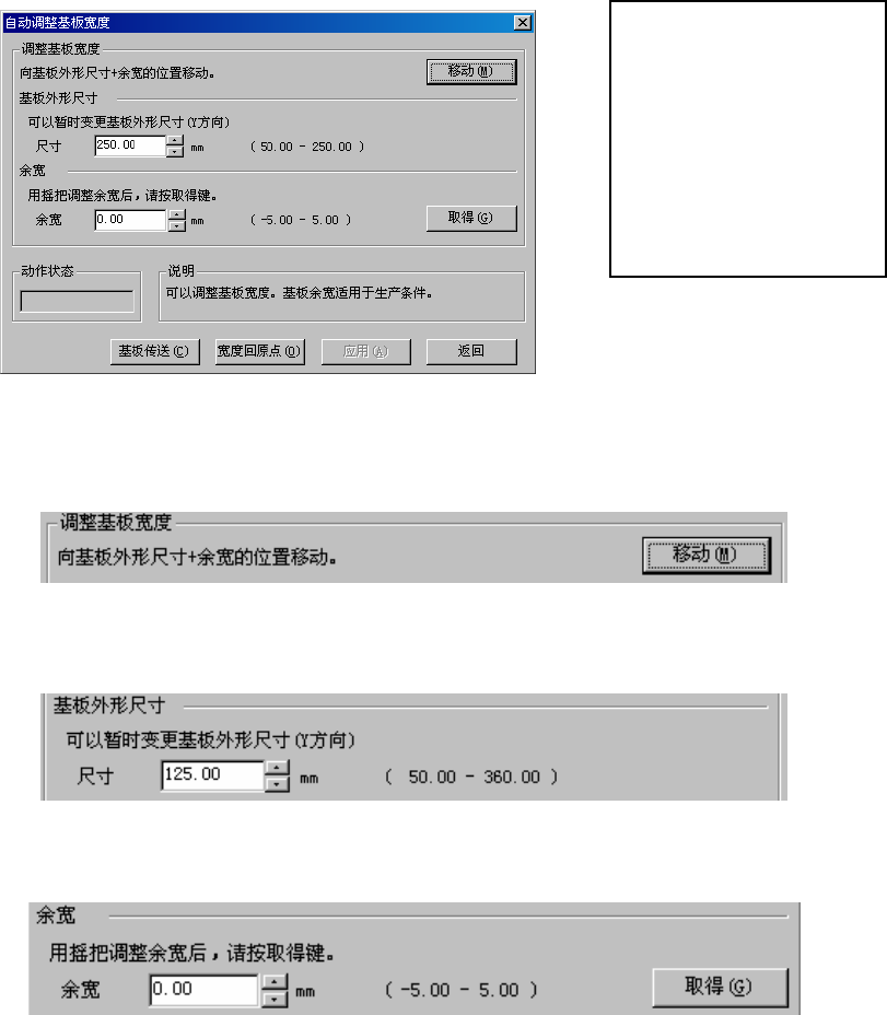 向基板外形尺寸+余宽的位置移动,运行时传送宽度值适用下列设定值。