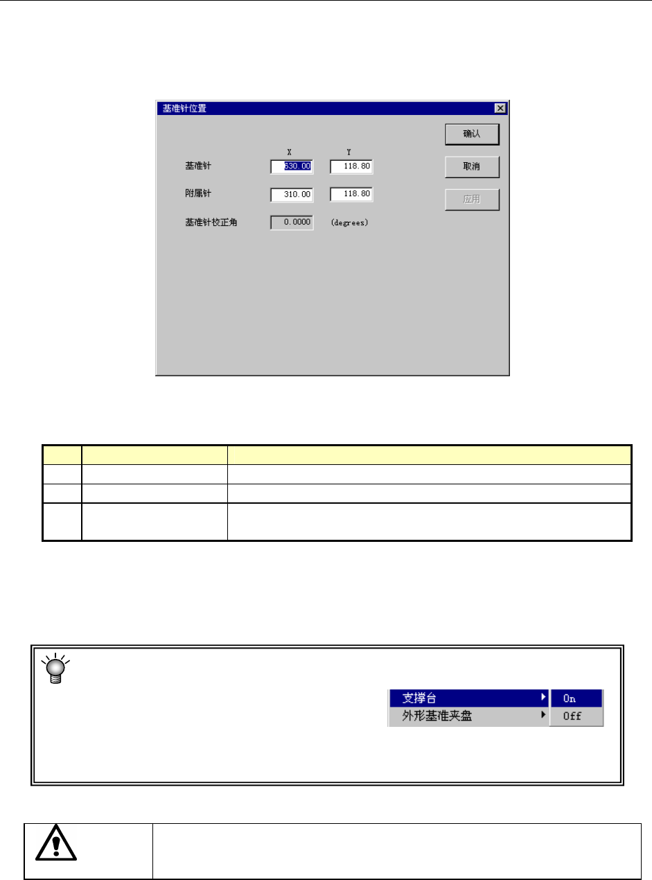 基准针(X、Y) 从机器原点到基准针的中心位置