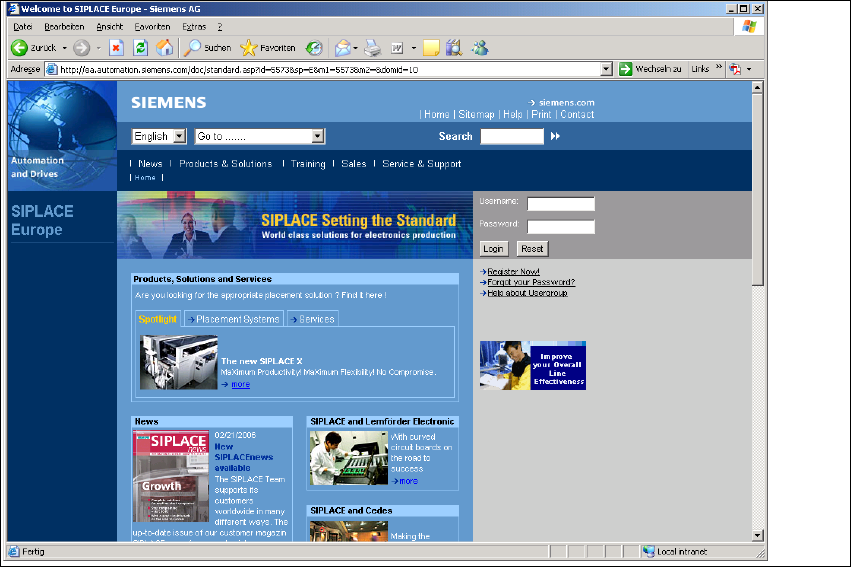 Information can also be found on the Internet. You can log on to the SIPLACE home page under