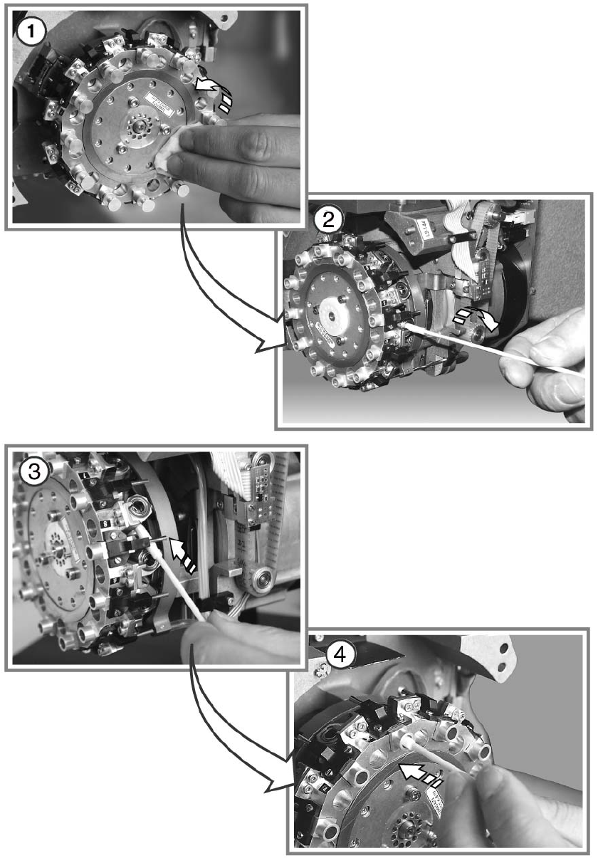f Reinigen Sie die Ventilkanäle mit einem mit Äthylalkohol benetzten Reinigungsstäbchen.