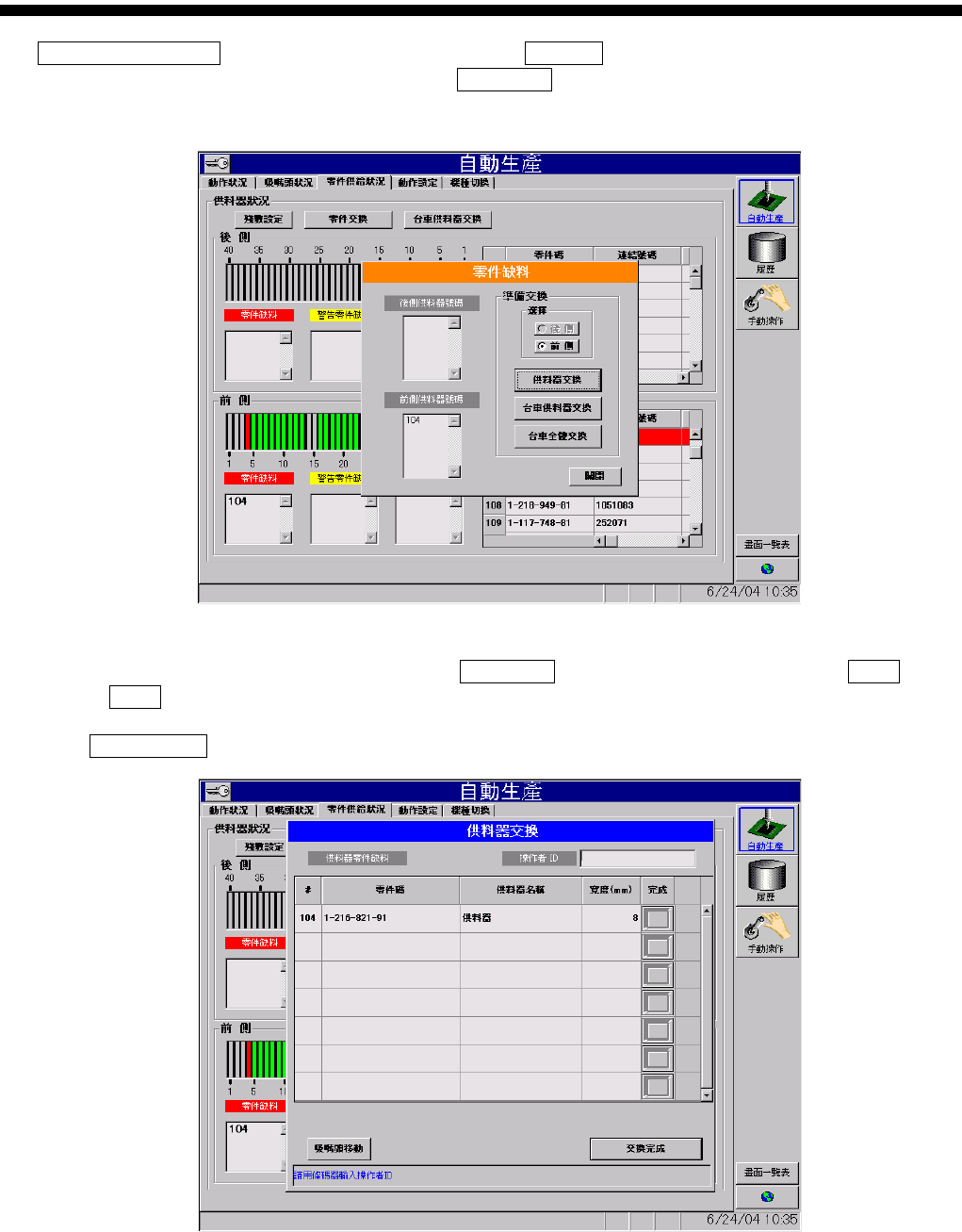 ·使用者层级为维修以上时,即使条形码确认未完全执行,零件也能交换结束。在操作者层级