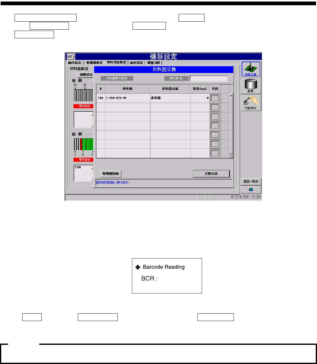 操作篇 4. 自动生产 SI-F130AI 4-53 , 交換完成 ( ) 供料器交換 ( ) 交換完成 ( ) 請關門 ( ) …