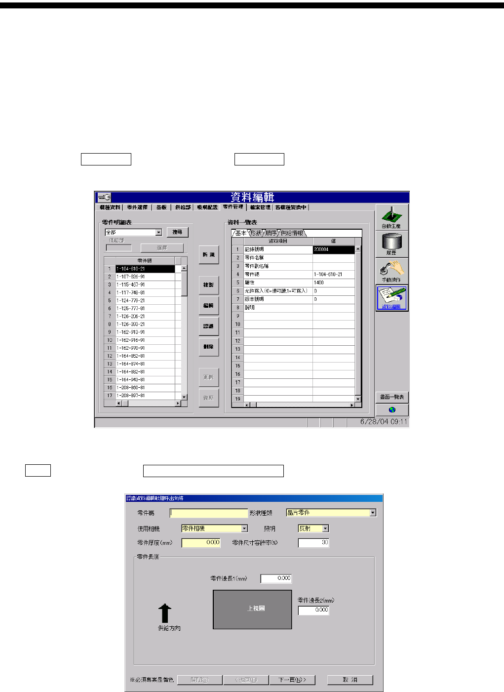 資料編輯 ( ) 零件管理 ( )